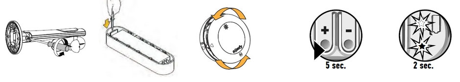 Open de ontvanger en druk gedurende korte tijd op één van de insteltoetsen (+ of -). Druk vervolgens binnen 2 seconden op - of + om de drempelwaarde aan te passen (zie onder de afbeelding):